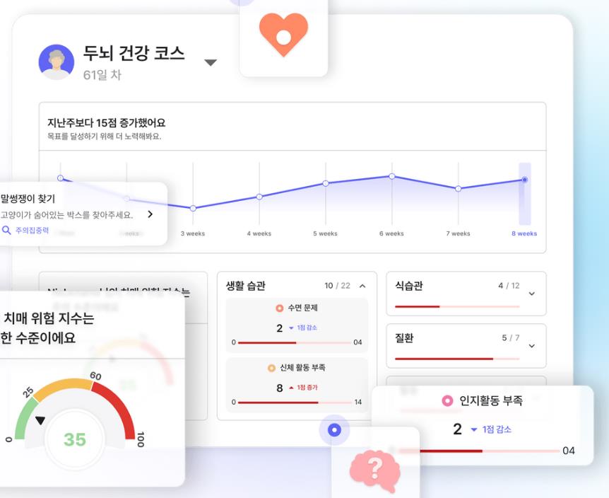 AI 기술 융합한 맞춤 솔류션으로 퇴행성 뇌 질환의 예방/치료 여정을 혁신함 |